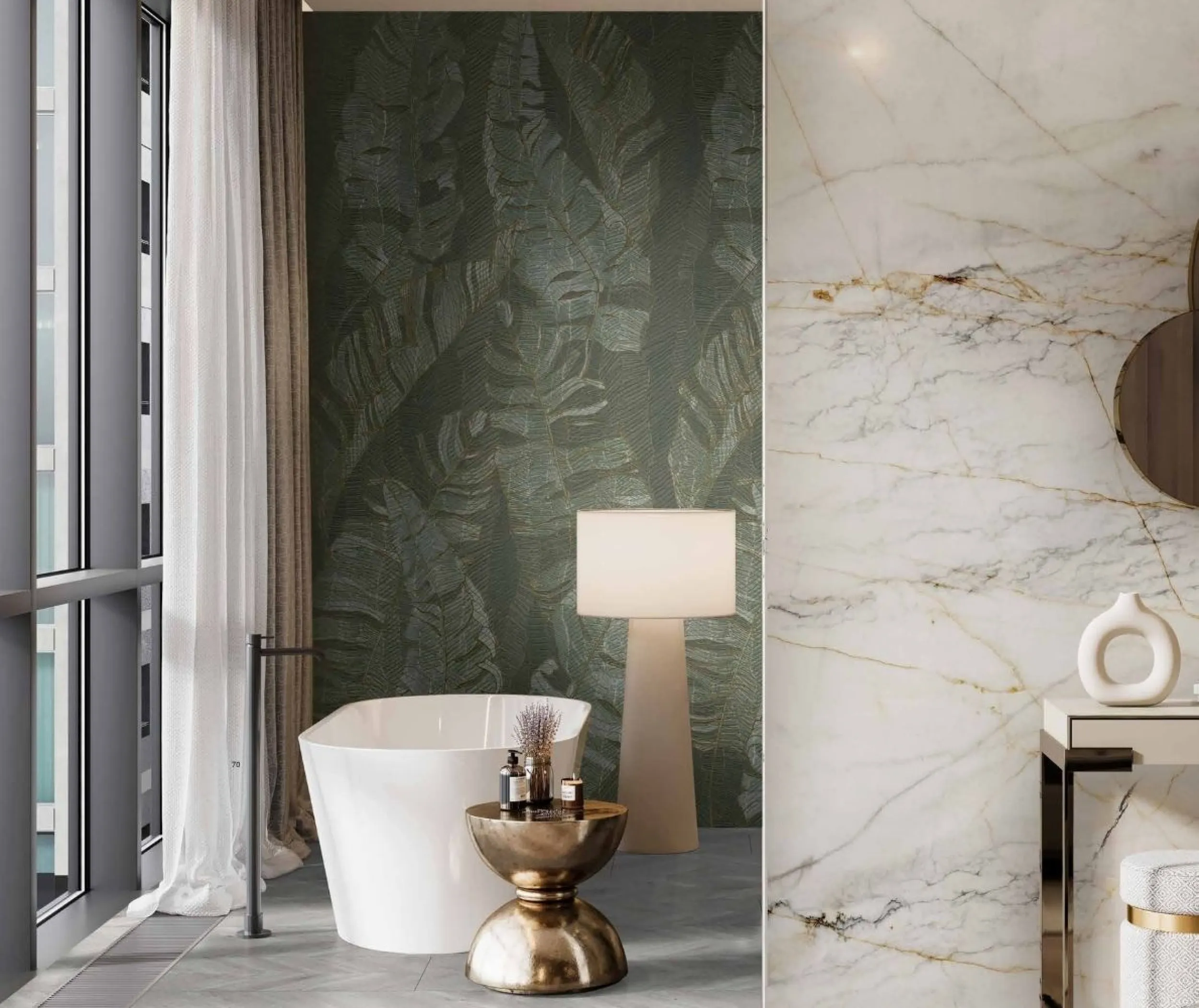 • realistické dizajny prírodných materiálov, ako je drevo, mramor a kameň