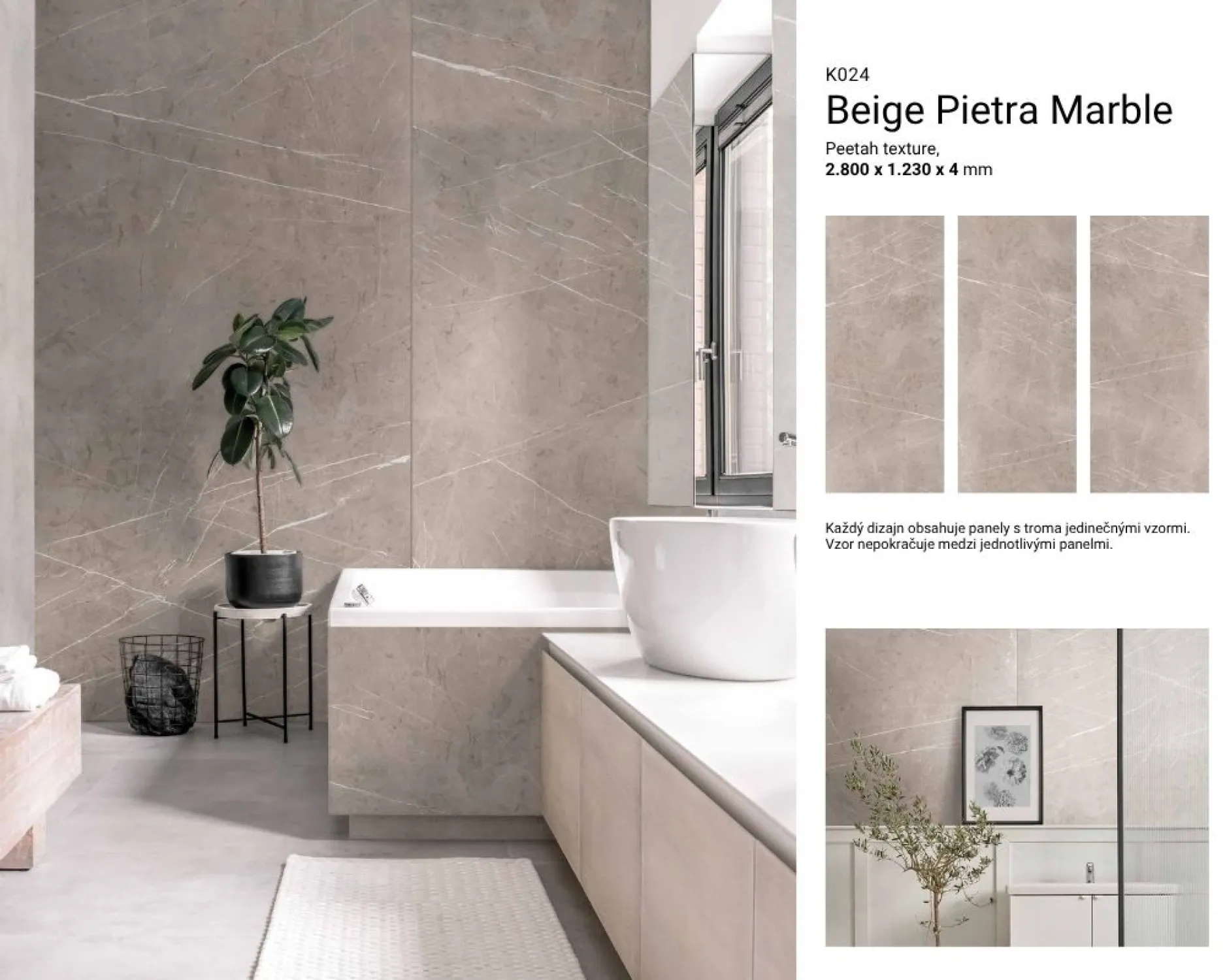 Vodeodolné veľkoformátové nástenné panely Rocko Tiles - cena za 1 panel o rozmere 4x1230x2800 mm.
